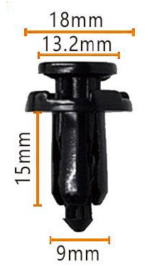 Með því að mæla 18 mm í þvermál, 15mm að lengd og 9mm í þykkt, samræmist þessi klemmur fullkomlega við festingarkröfur Honda og Nissan ökutækja. Einstakur ávöl toppur hans auðveldar auðvelda uppsetningu og fjarlægingu, á meðan keilulaga botninn eykur í raun snertisvæðið með festingaryfirborði og eykur stöðugleika tengingarinnar. Að auki, skýrt merktar víddir „18mm,“ „3,2mm“ (sem við gerum ráð fyrir að sé viðbótarvíddarviðmið, ef til vill fyrir ákveðna breidd eða smáatriði, en fókusinn er áfram á 18 mm þvermál) og „9mm“ á myndina útrýma öllum áhyggjum af misræmi í stærð við kaupin.