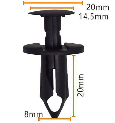 Að kynna hágæða plastfestingarklemmur okkar, sem eru hönnuð til að veita örugga og áreiðanlega tengingu fyrir ýmis forrit. Þessar svörtu klemmur eru með hringlaga höfuð með 20 mm þvermál og 14,5 mm hæð, sem tryggir auðvelda meðhöndlun og uppsetningu.