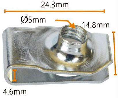 Festingin státar af nákvæmum heildarvíddum, mælist 24,3 mm á breidd og 14,8 mm á hæð, sem tryggir óaðfinnanlegan passa við festingarstaði á bílnum þínum. Að auki gæti 4,6 mm lengdin sem nefnd er neðst á myndinni vísað til gagnrýninnar víddar tiltekins hluta, þar sem enn frekar lagt áherslu á fagmennsku vörunnar og nákvæmni.